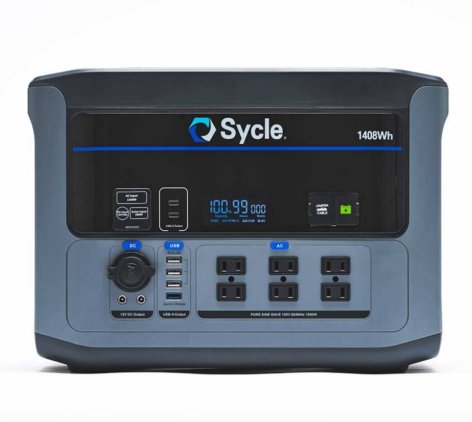 1408Whの大容量にもかかわらず、超急速充電により1時間でのフル充電を実現。Sycleポータブルソーラー(別売)やシガーソケットでの充電も可能に。