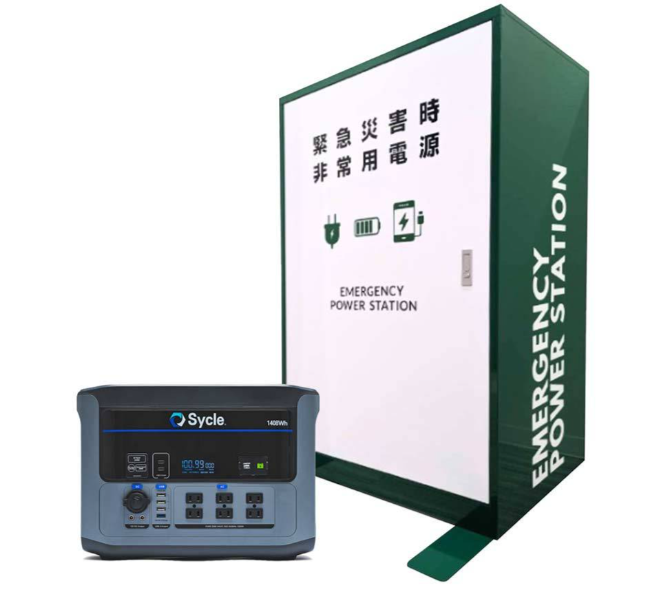 Sycle本体の他に、エクストラバッテリー・USB充電ハブ・ソーラーパネルなどが格納され、大勢の従業員・来場客など大規模施設の給電を可能にします。