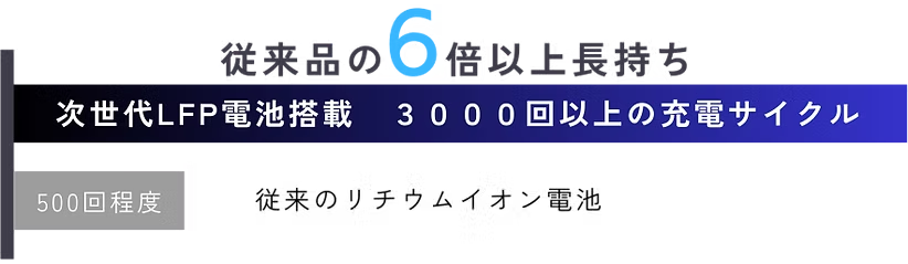 | 充放電サイクル寿命 | 3000回(残存容量80%想定) |