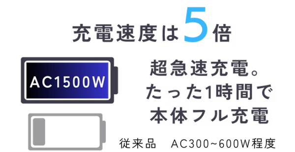 家庭用コンセントからでも約1時間でフル充電ができます。